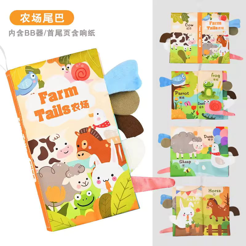- Soft 4-page fabric book with 3D stereoscopic animal tails