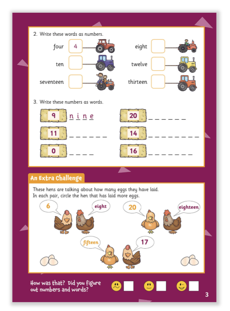 A bright and colourful Maths Activity Book brimming with charming characters, engaging activities and crystal-clear explanations. Perfect for practice at home or in class, it’s loaded with useful Maths practice for ages 5-6 (Year 1 of primary school) and covers counting, fractions, number bonds and more. Each topic is explained in easy-to-understand language, followed by fun-packed activities and challenges designed to boost your child's confidence and make sure all that knowledge really sticks! Self-assessment boxes at the end of each topic can be used to keep track of their progress. There is also a selection of exciting puzzles so your child can apply their Maths skills in a different context.